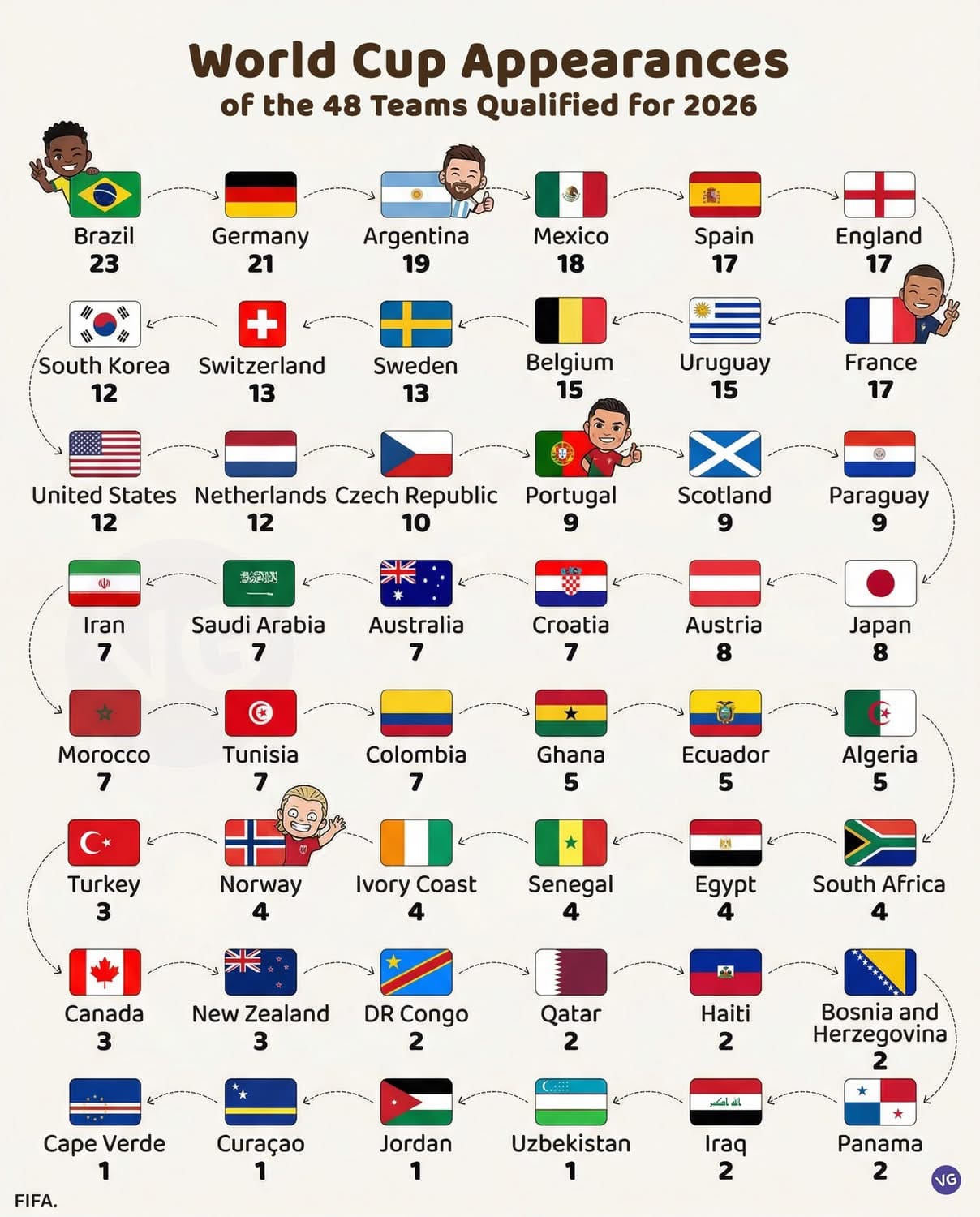 🌍 Les grandes nations historiques toujours au rendez-vous