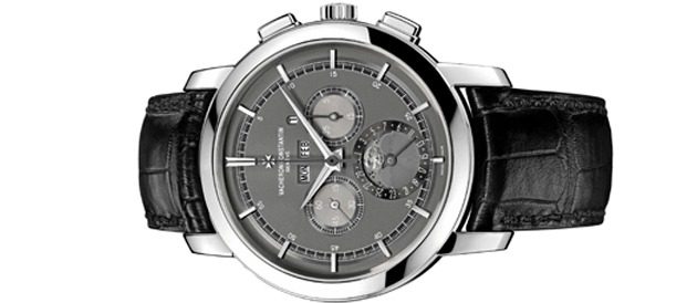 Horlogerie – Il s’agit d’une montre chronographe à remontage manuel.Vacheron Constantin, avec sa ligne Patrimony Traditionnelle Platine 950 atteint le summum du savoir-faire horloger, en mettant ses remarquables mouvements au service de la haute horlogerie.Ce chronographe quantième perpétuel à remontage manuel abrite le calibre 1141QP,une splendide mécanique avec un minimum d’épaisseur: 7,40mm.