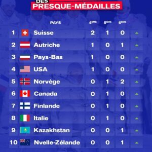 JO 2026: La Suisse en tête des presque médailles